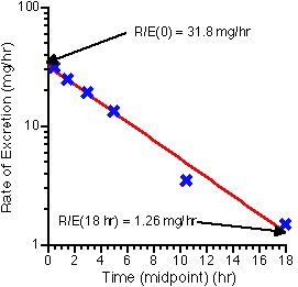 NOTE: Missing data means that the Amount Remaining to be Excreted method cannot be used. Thus, need to plot R/E versus midpoint time
