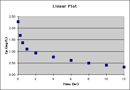 3. Using a dosing interval close to the terminal half-life. Half-life (t1/2) = ln(2)/0.14 = 4.95 hr. Using a dosing interval (tau) of 4, 6, or 12 hours gives: