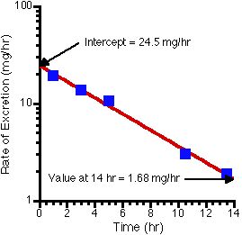 Since the Intercept = ke x Dose = 24.5 = ke x 500