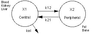 Diagram XIX-1 Two Compartment Pharmacokinetic Model